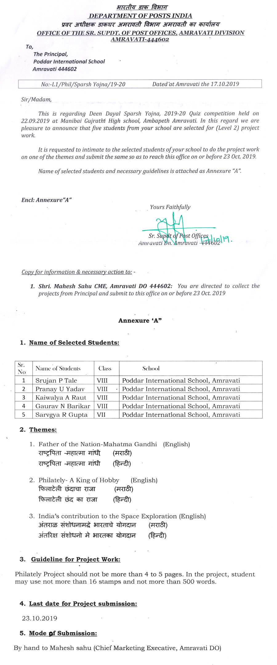 Achievement In Divisional Level Quiz Competition 2019 Podar News